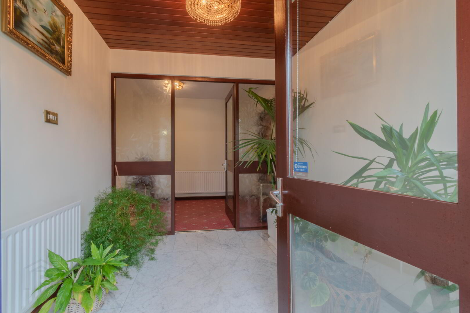 Marble Tile Flooring, Glazed Hardwood Front Door with Sidelights, Radiator.