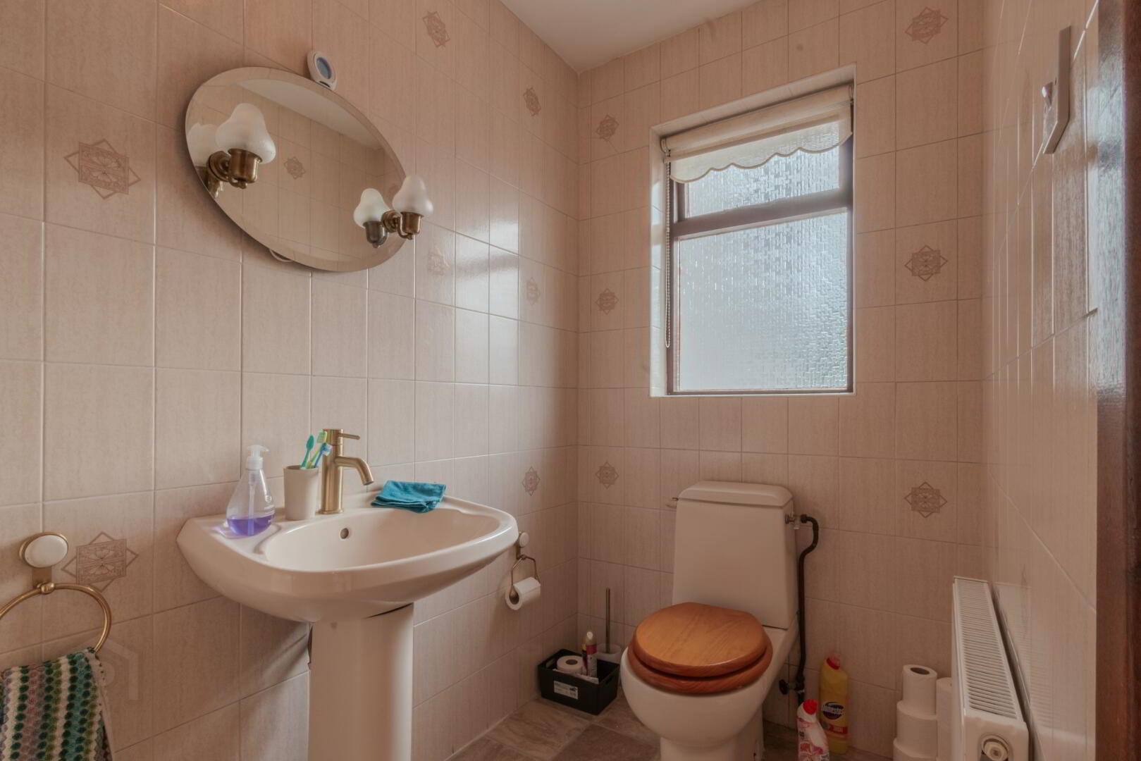 Tile Effect Linoleum Flooring, WC, Wash Hand Basin with Mixer Tap, Window to Rear.