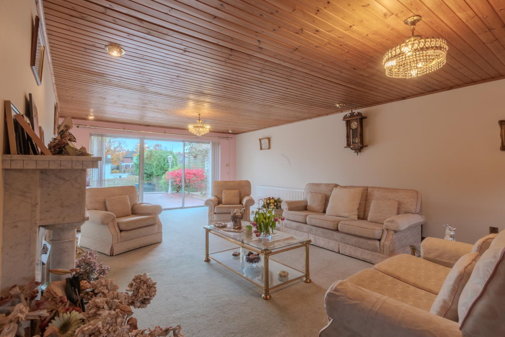 Carpeted Flooring, Window to Front, Sliding Doors to Upper Patio, Open Fire with Ornate Marble Surround, 2x Radiators, Socket Points.