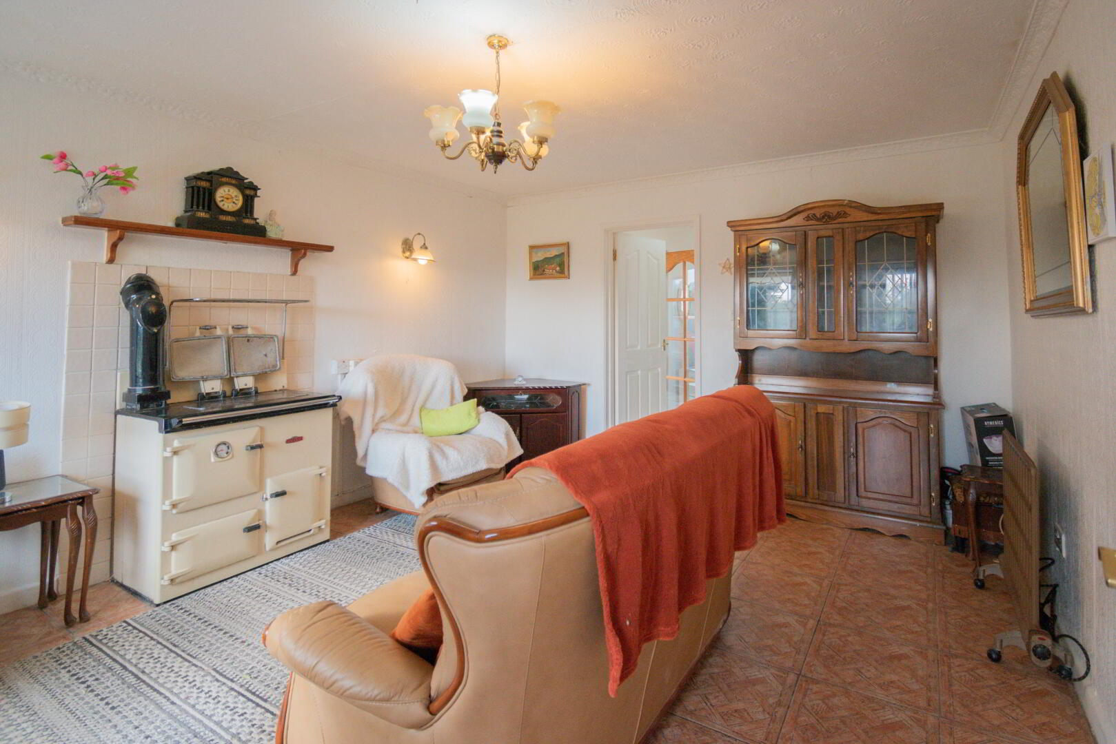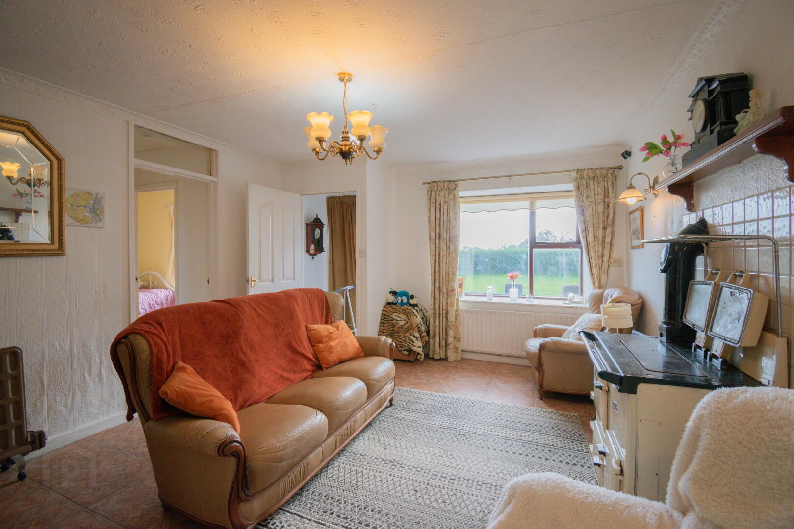 Tiled Flooring, Rayburn Royal Stove, Window to Front, Radiator, Socket Points.