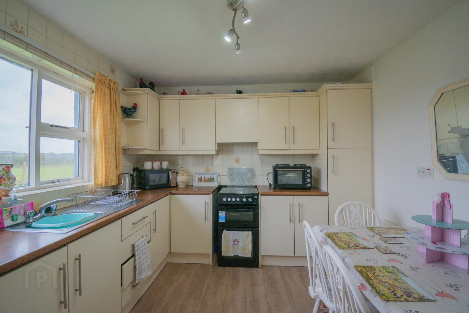 Linoleum Flooring, Eye & Low-Level Laminate Units with Laminate Worktop, Plumbed for Auto, Stainless Steel Sink & Drainer, Radiator, Socket Points, Window to Rear.