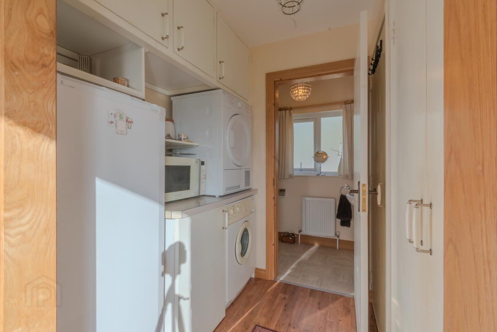 Wood Effect Vinyl Flooring, Attic Access, Plumbed for Auto, Hotpress Cupboard with Tank & Shelving, Larder Cupboard, High & Low-Level Cupboard with Laminate Worktop.