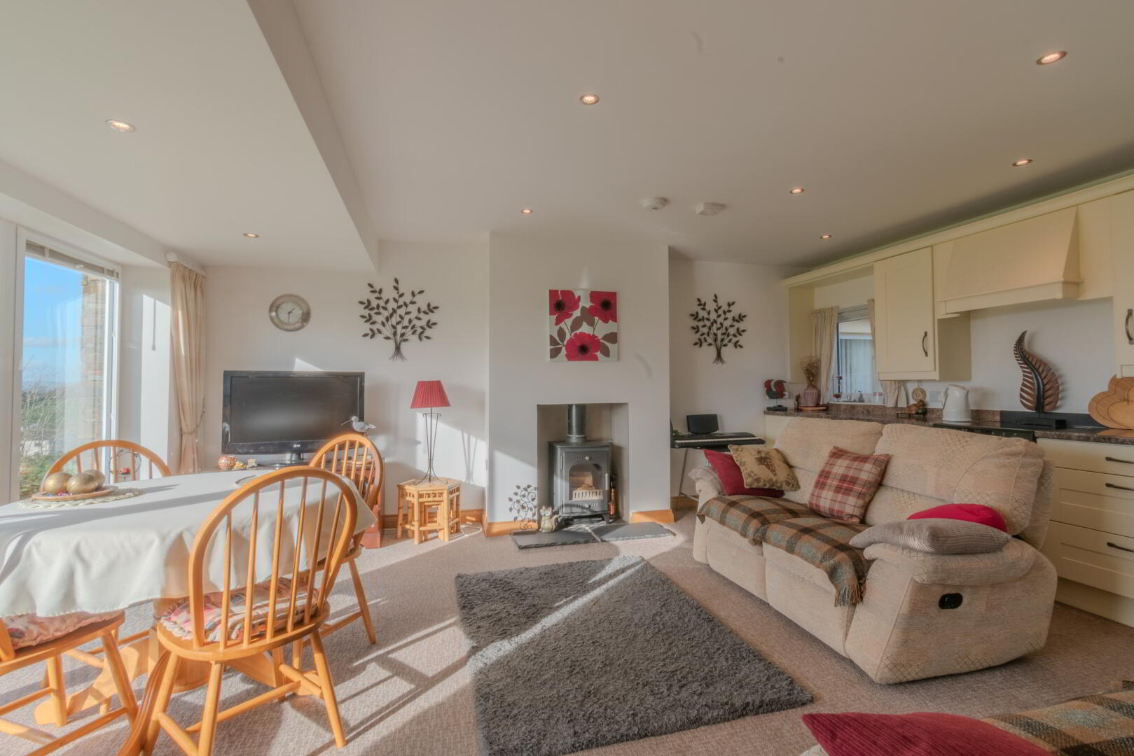 Offering generous and flexible accommodation throughout, the main house is arranged over two floors and is rich in character, featuring multiple fireplaces and stoves, beautifully proportioned rooms, and large picture windows designed to maximise the exceptional outlook. The property extends to five bedrooms and is ideally suited to family living, with a layout that allows both everyday practicality and entertaining on a grander scale.
