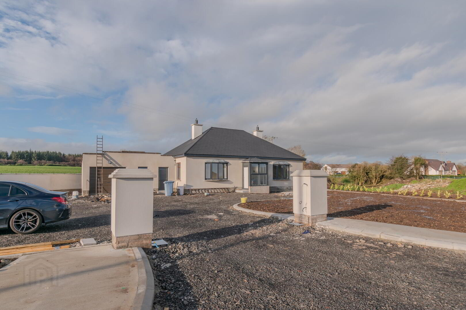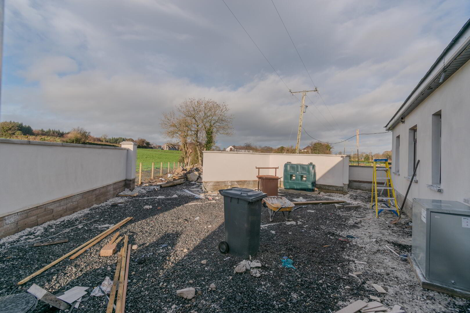 Front accessed by Ballymacombs Road with parking for multiple vehicles and access to integral garage. This will be finished laid in lawn, with electric gates and metal rails throughout. The yard will be concreted in spring time.