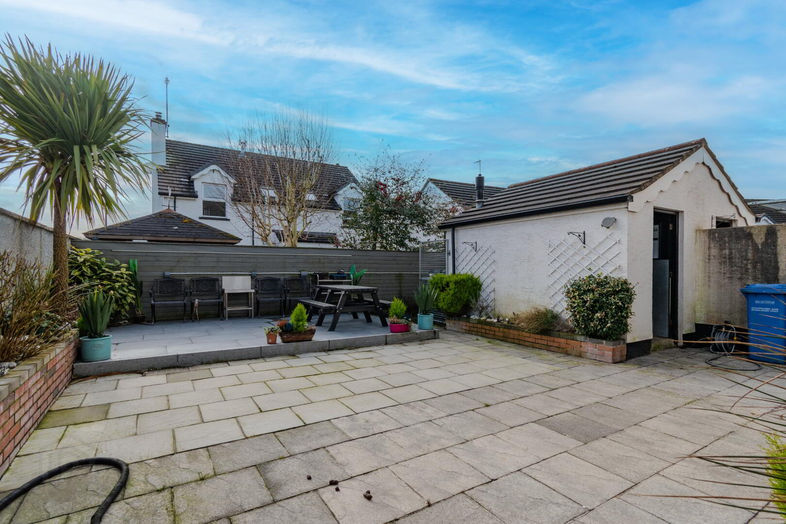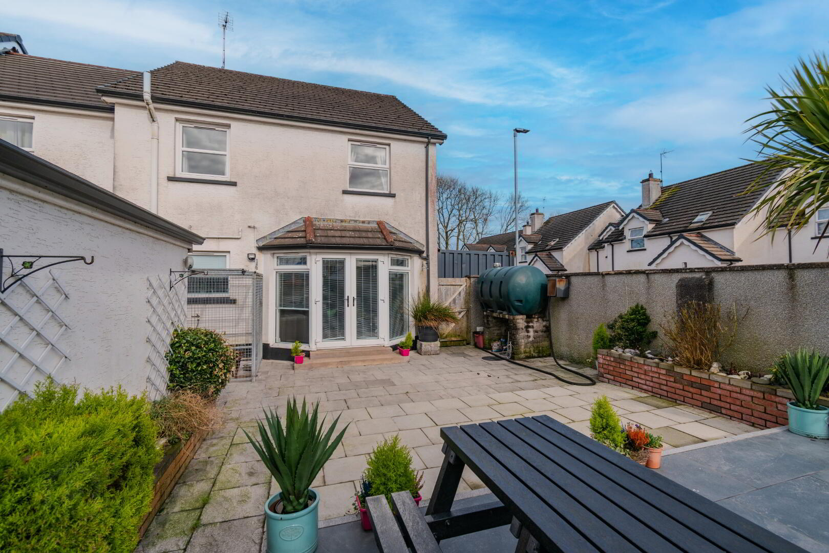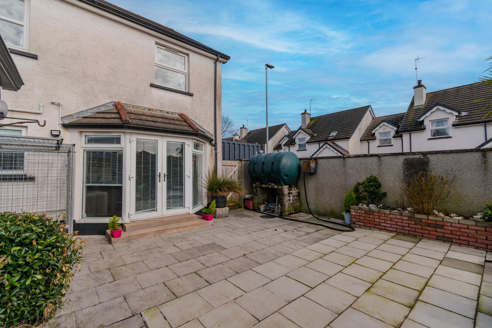 Low-Maintenance, Fully Enclosed Rear Yard with Raised Patio Space, Outside Tap, Oil Tank, Outdoor Socket Points.