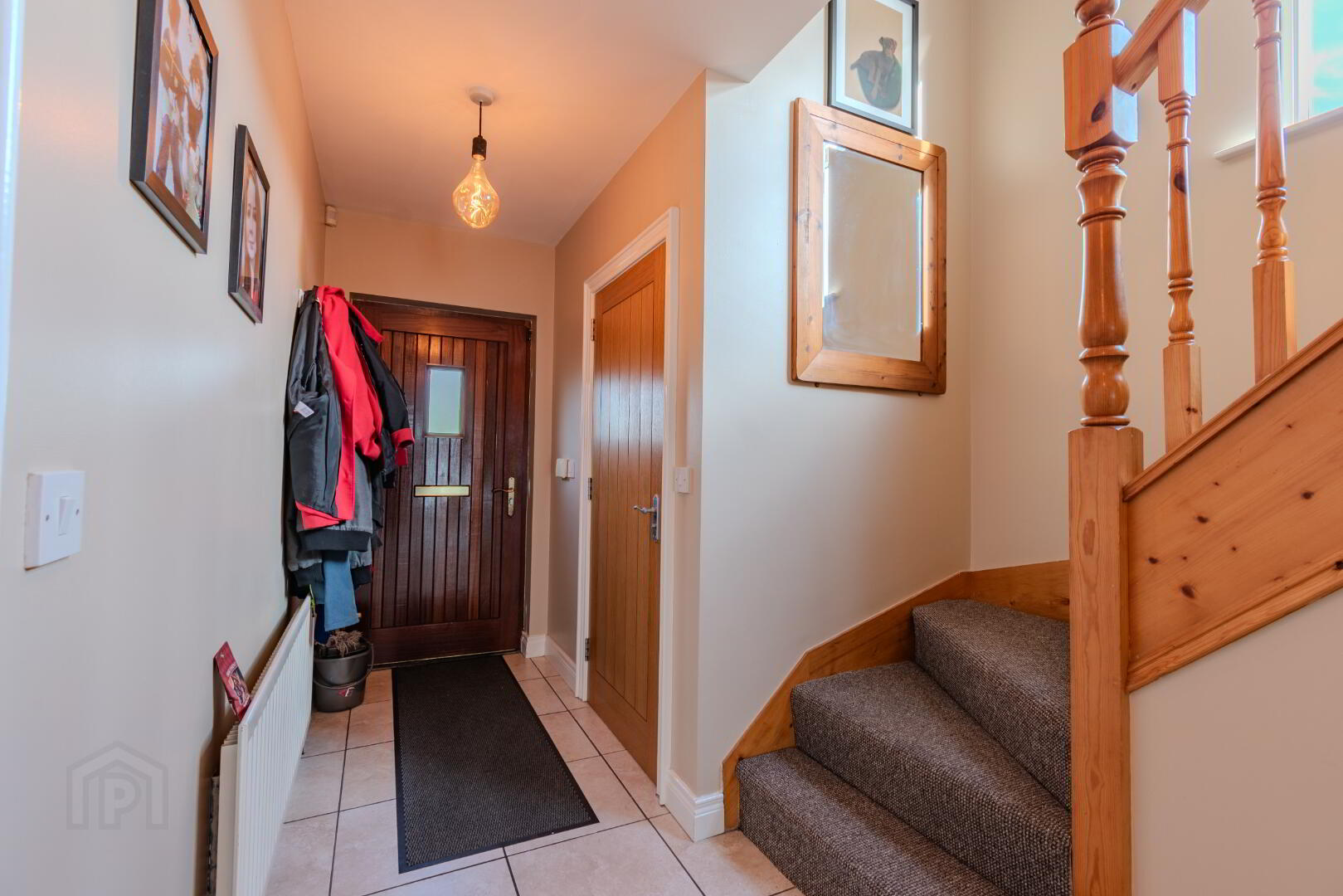 Hardwood Front Door, Tiled Flooring, Understairs Storage, Socket Point.