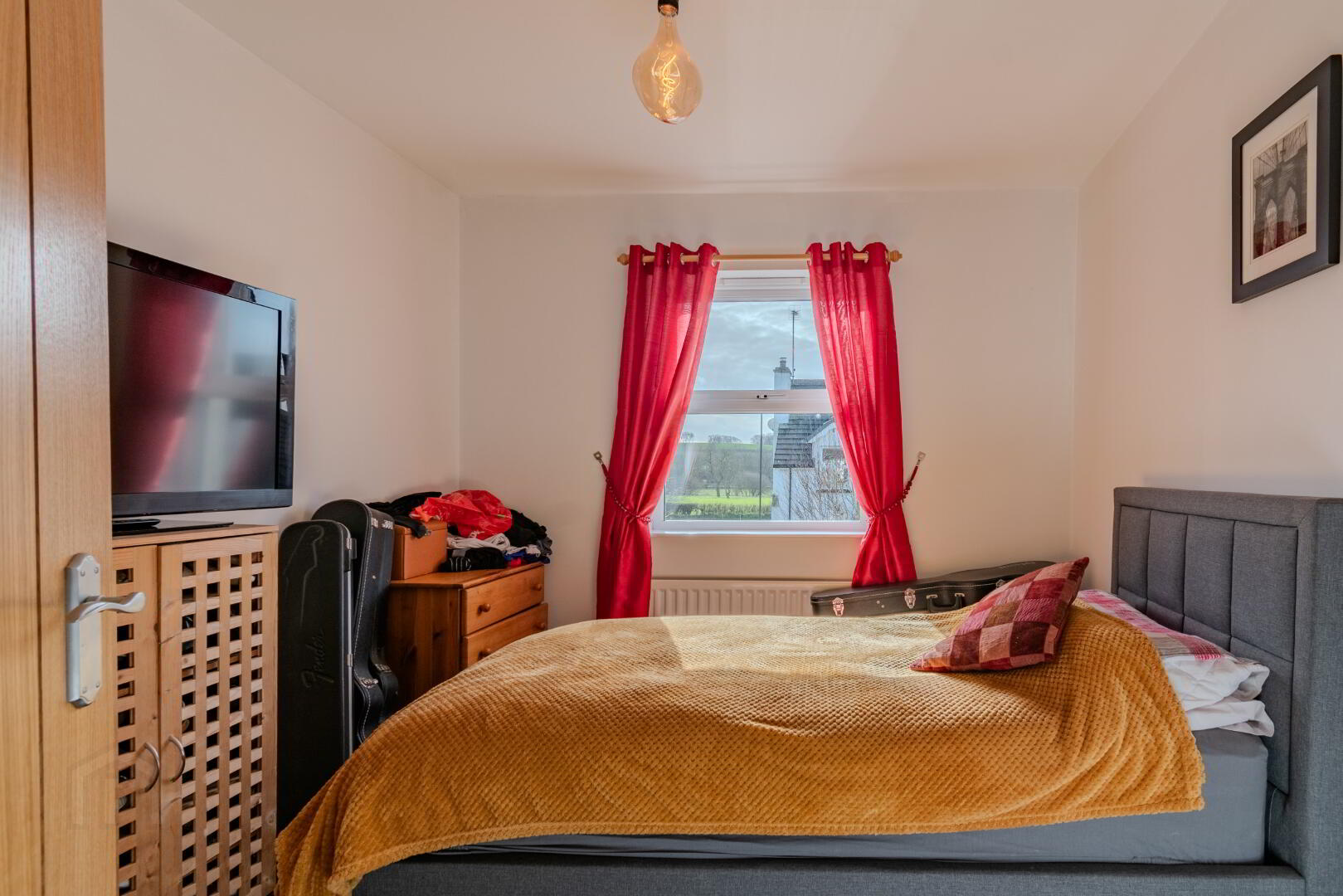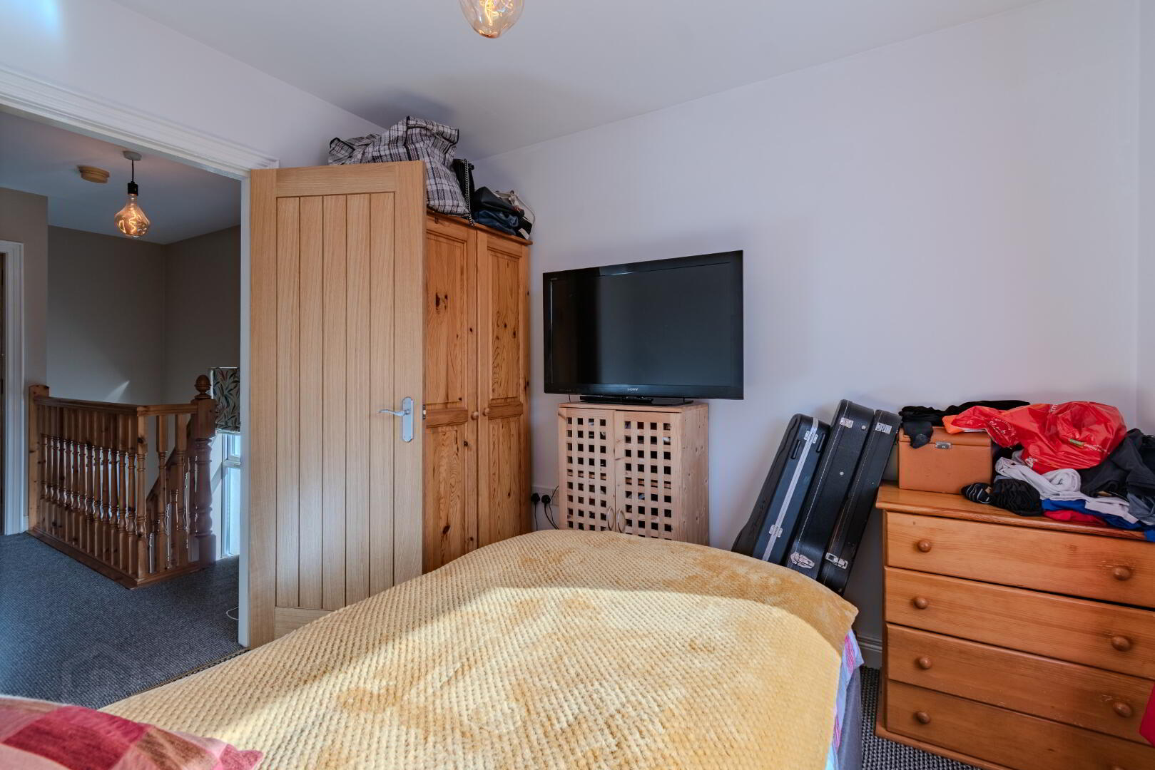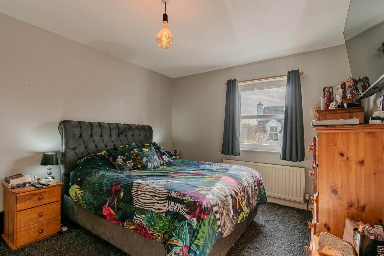 Carpeted Flooring, Window with Side Aspect, Radiator, Attic Access, Hotpress Cupboard with Tank & Shelving, Socket Point.