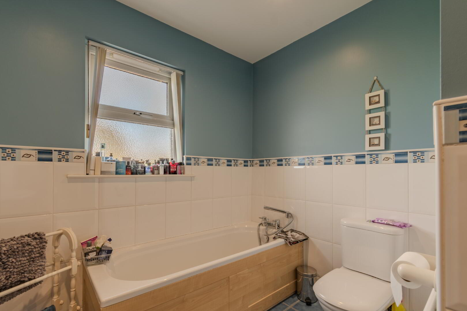 Tiled Flooring, Shower Enclosure with Electric Shower, Wash Hand Basin with Vanity Unit, Low Flush WC, Radiator, Bath with Telephone Tap, Window with Front Aspect.
