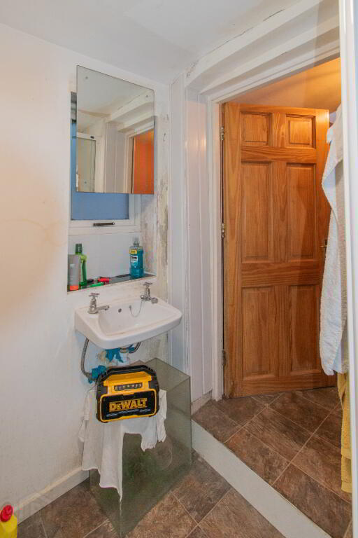 Split Level to Bathroom, Wooden Door.
