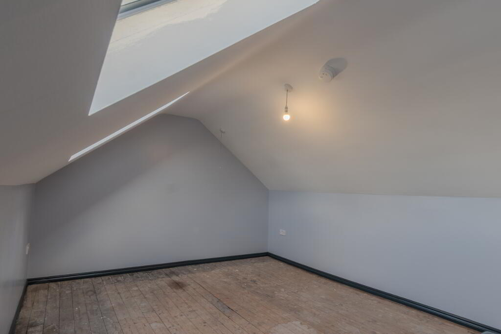 Accessed by Stairs from Landing, 2x Velux Windows with Rear Aspect, Radiator, Socket Points, Access to Eaves / Attic Storage with Partial Flooring.