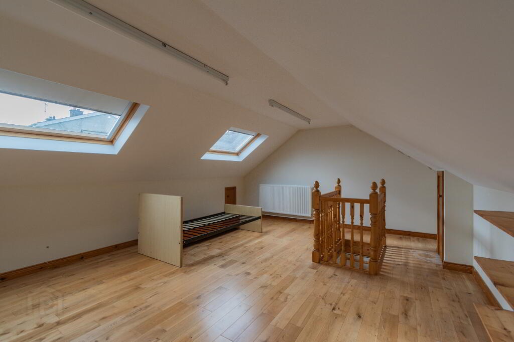 ATTIC / STORAGE SPACE with pull down loft ladder, wood flooring, 2x velux windows, radiator.