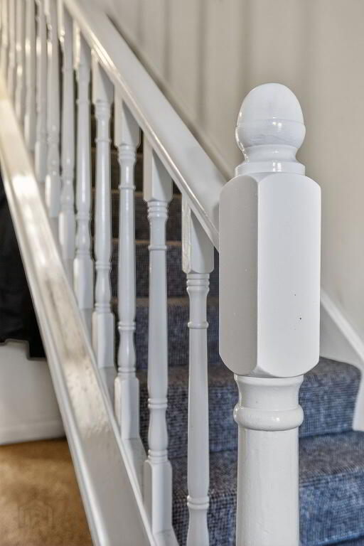 Carpeted stairs and landing, window on landing to side, hotpress, attic access, socket points.
